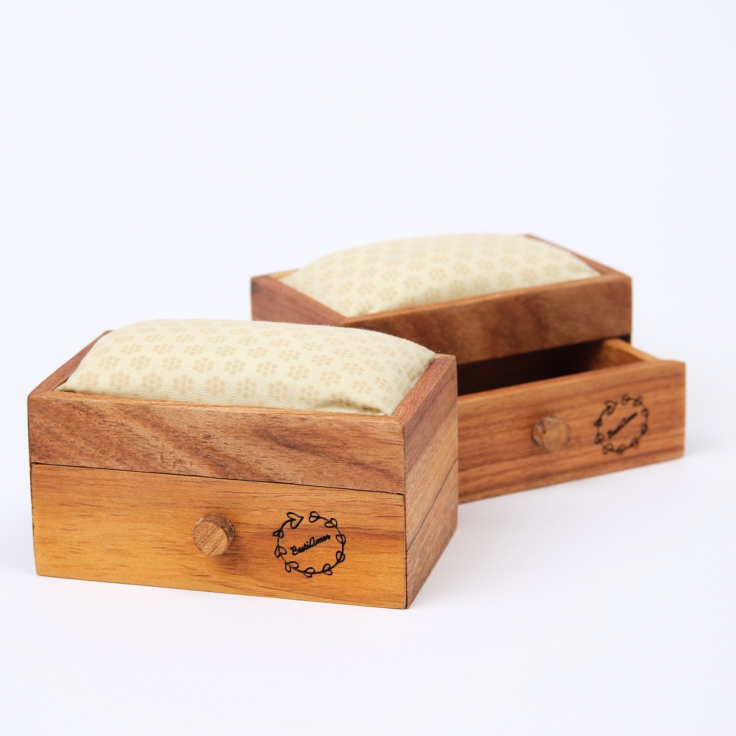Esse é a nossa nova versão do agulheiro de madeira! Com uma madeira mais leve, novo puxador e novo tecido da almofada!