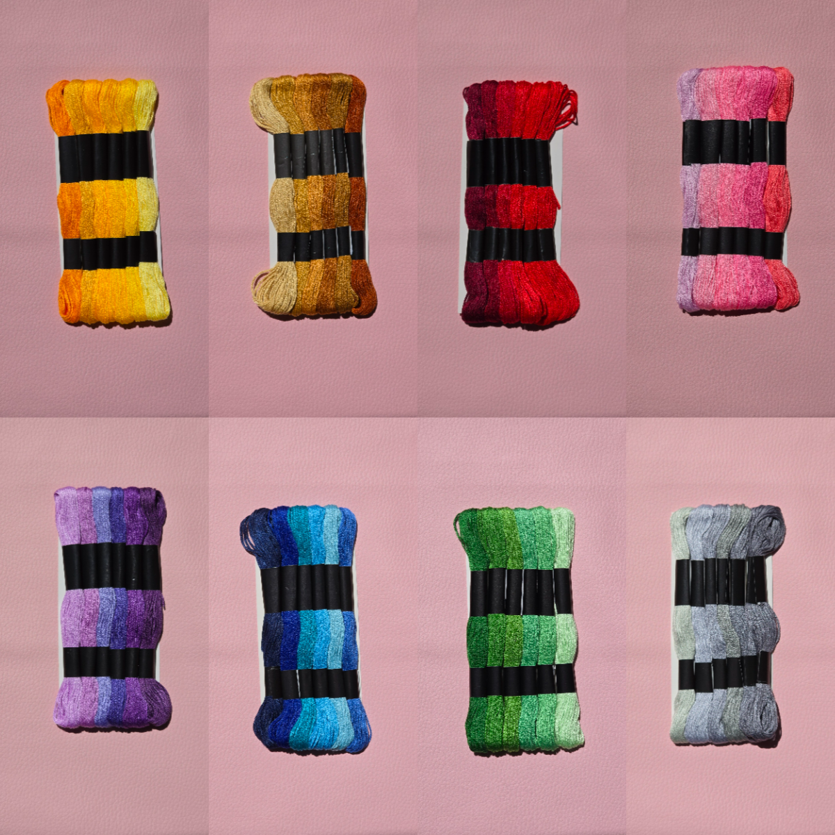 Dica da Bordadeira: guarde suas linhas seguindo a ordem das cores de cada kit de cor. Essa é uma forma de você rapidamente montar uma paleta para seu bordado.