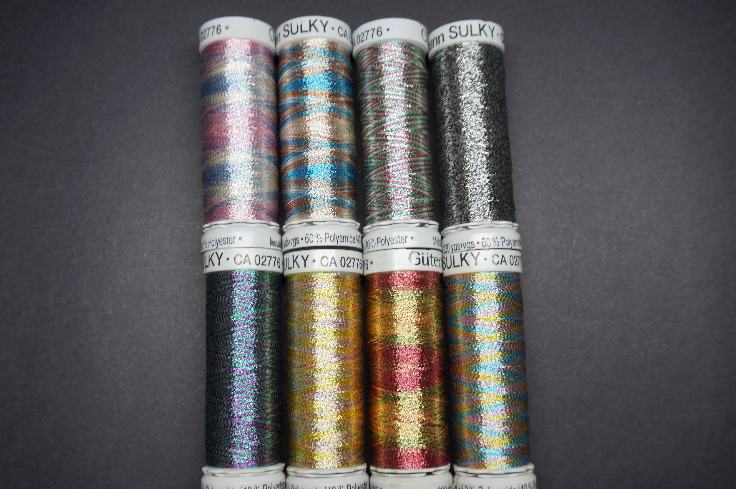 As linhas estampas possuem esse nome porque possuem mesclas de cores e são metalizadas. Muito mais fáceis de trabalhar do que linhas metalizadas de meada porque apresentam um fio único no seu carretel e são mais maleáveis.Sua composição é: 60% Poliamida e 40% Poliéster. Cada carretel possui 200 metros! Colocamos como referência para cada nome das linhas, as cores que mais se destacam, mas podem ter muitas mais em cada cor.