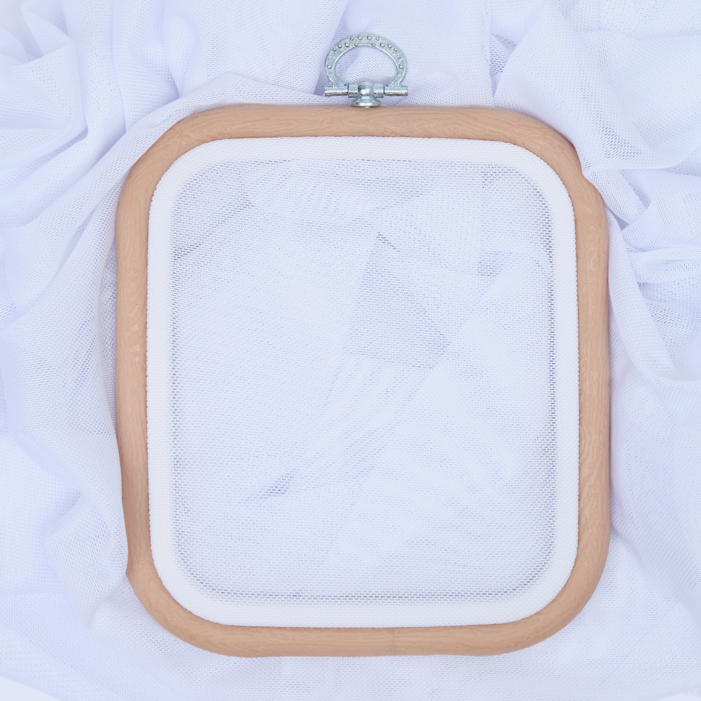 Essa é a nossa mais nova solução! O tule em malha possui furos pequenos e tem um tecido que estica bem e se acomoda perfeitamente no bastidor. Um novo acabamento super elegante!